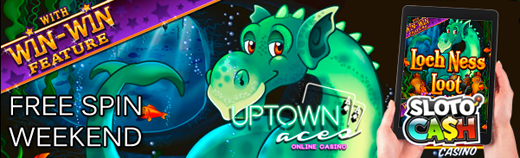 On Saturday January 31st from 00:00 EST until 23:59 EST you can claim another 20 free spins on the Loch Ness Loot Mobile Slot at Uptown Aces Casino.