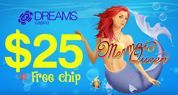 Sign up and claim this Dreams Casino Mermaid Queen Slot free chip worth $25 now.