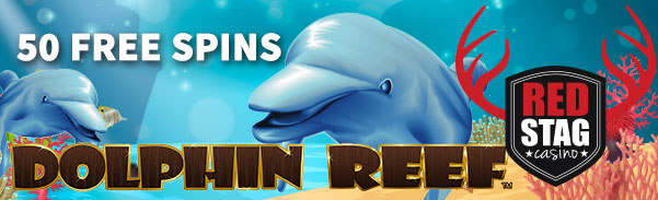 Sign up at Red Stag Casino and claim 50 free spins on the Dolphin Reef Slot with no deposit needed.